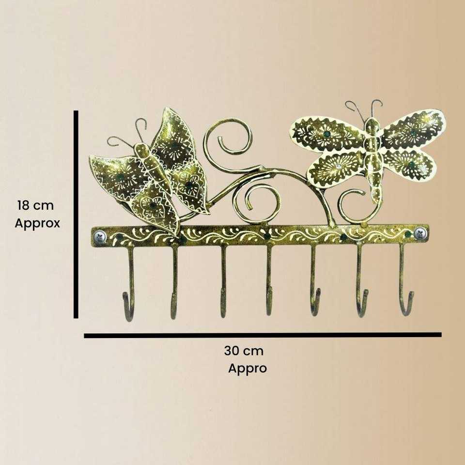 Handcrafted 2 Butterfly Wall Hook Rack – Decorative Butterfly Wall Hook Stand – 7 Hook Iron Key Organizer for Home