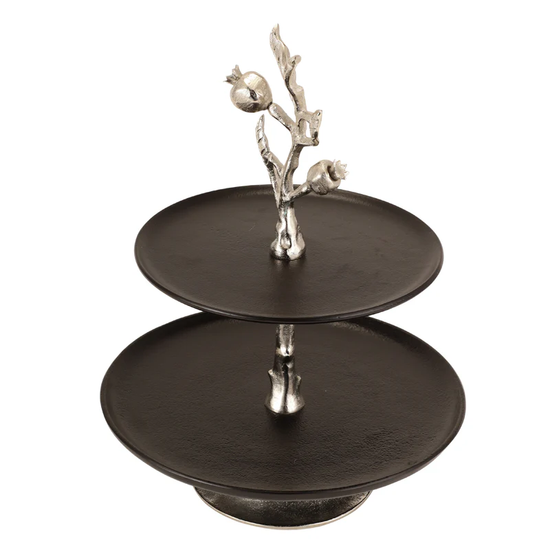 Handcrafted 2-Tier Round Aluminium Cake Stand with Silver and Black Finished for Christmas Cake and Cookie Serving Use