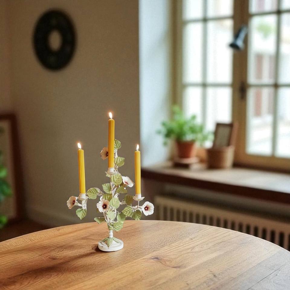 Handcrafted 3 Arm Floral Metal Candle Holder | Vintage Decorative Candelabra Stand with Leaves & Flowers for Home Decor