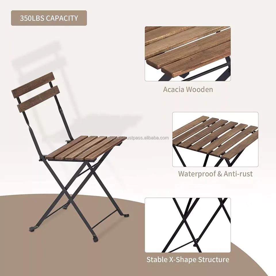 Handcrafted 3 PCS Outdoor Bistro Set From Vietnam ACACIA Garden Patio Furniture with Bamboo Wooden Chat Set and Aluminum Frame