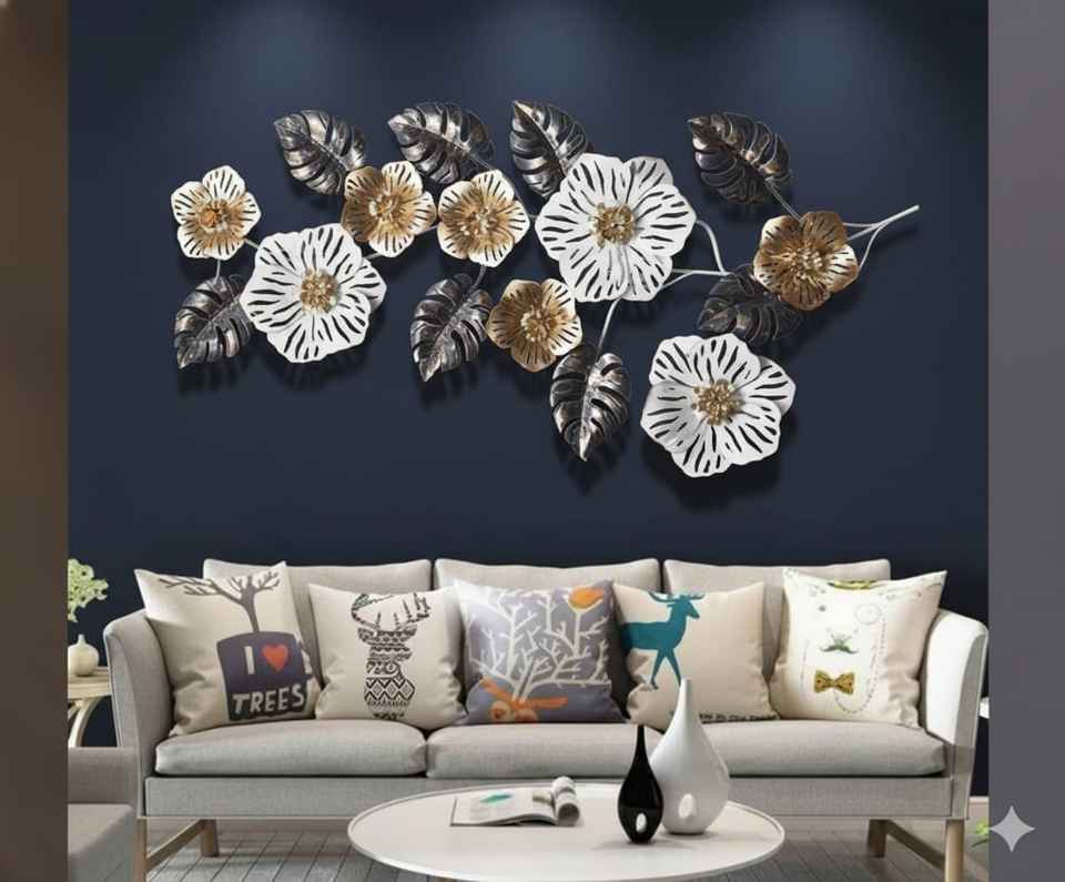 Handcrafted 3D Flower Design Metal Wall Sculpture Luxury Framed Wall Art for Living Room Bedroom and Home Interior Decoration