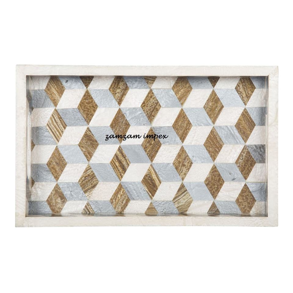 Handcrafted 3D Pattern Resin Inlay Serving Tray Artistic Epoxy Coffee Table Snacks Drinks Home Decorative Tray Use for Serving