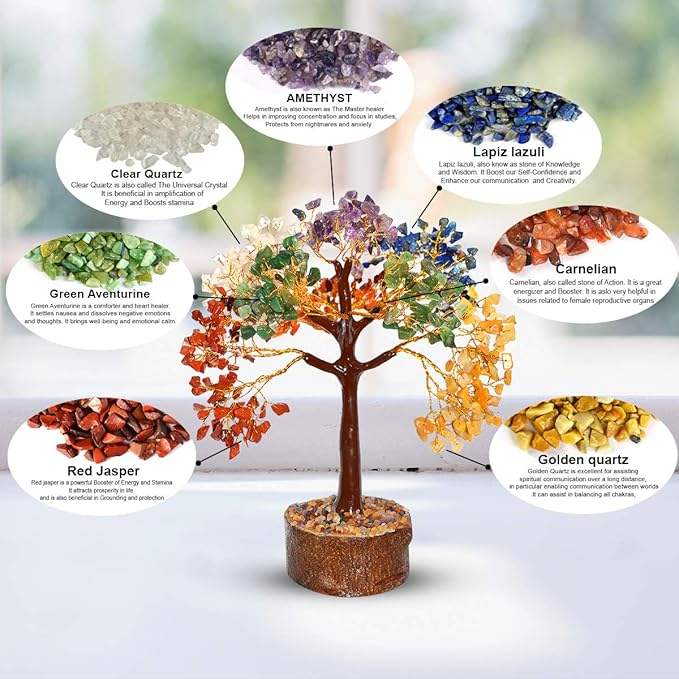 Handcrafted 7 Chakra Crystal Tree with 500 Gemstone Beads for Wellness and Chakra Activation Meditation Healing and Spiritual