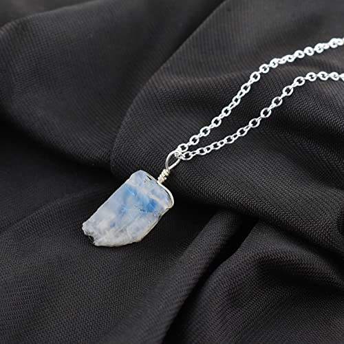 Handcrafted 8-15mm Rainbow Moonstone Pendant Necklace June Birthstone Jewelry Gift for Weddings Raw Wire-Wrapped Gemstone