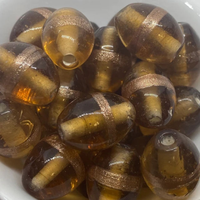Handcrafted 8mm Multi-Golden Opaque Dark Color Lampwork Glass Beads Gold Stone Oval Shape 14x20mm for Jewelry Making