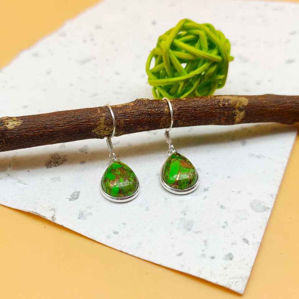 Handcrafted 925 Sterling Silver Earring Green Copper Turquoise Drop Shape with Pearl Wedding Birthday Gift for Bride
