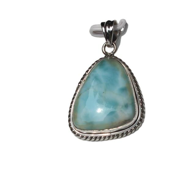 Handcrafted 925 Sterling Silver Gemstone Pendant Untreated Natural Larimar Oval Cabochon Plated Jewelry Stone Fashion Charms