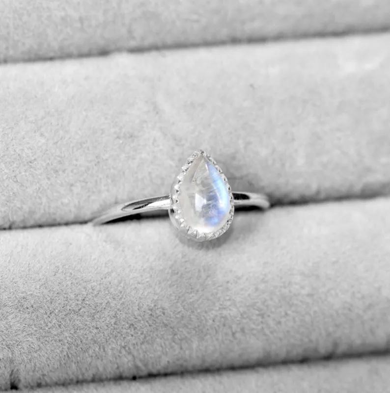 Handcrafted 925 Sterling Silver Pear Cut Moonstone Ring for Women Elegant Natural Gemstone Jewelry Vintage Style