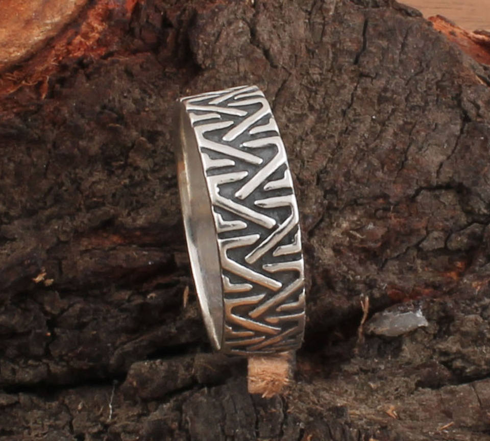 Handcrafted 925 Sterling Silver Spinner Ring with Wavy Edge and Hammered Finish Copper & Brass Wedding & Party Ring
