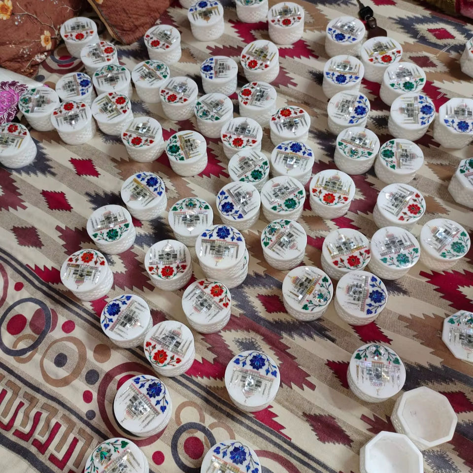 Handcrafted High Quality AGATE Inlay Circular Box Lid Traditional Antique Carved Engraved Design Souvenir Stone Coaster Delhi