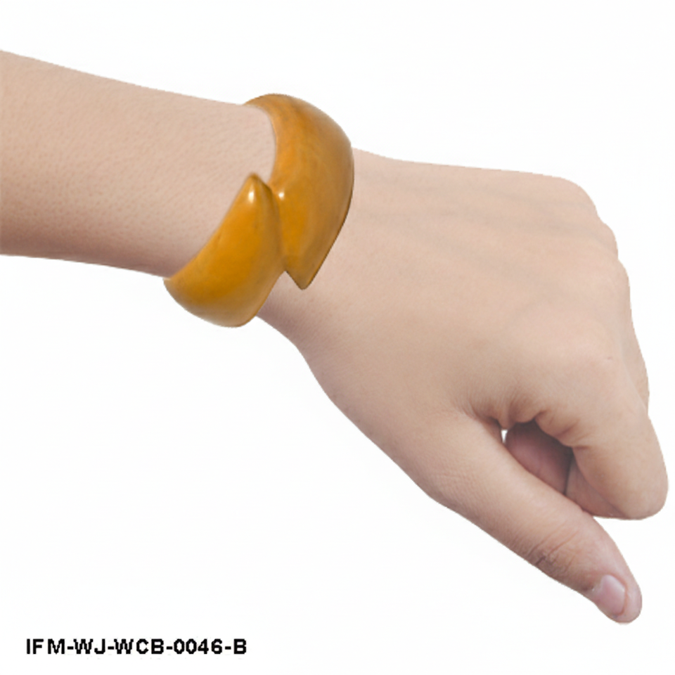 Handcrafted Abstract Wooden Cuff Bangle Mustard Yellow Sculptural Statement Bracelet Minimalist Organic Wood Jewelry for Women