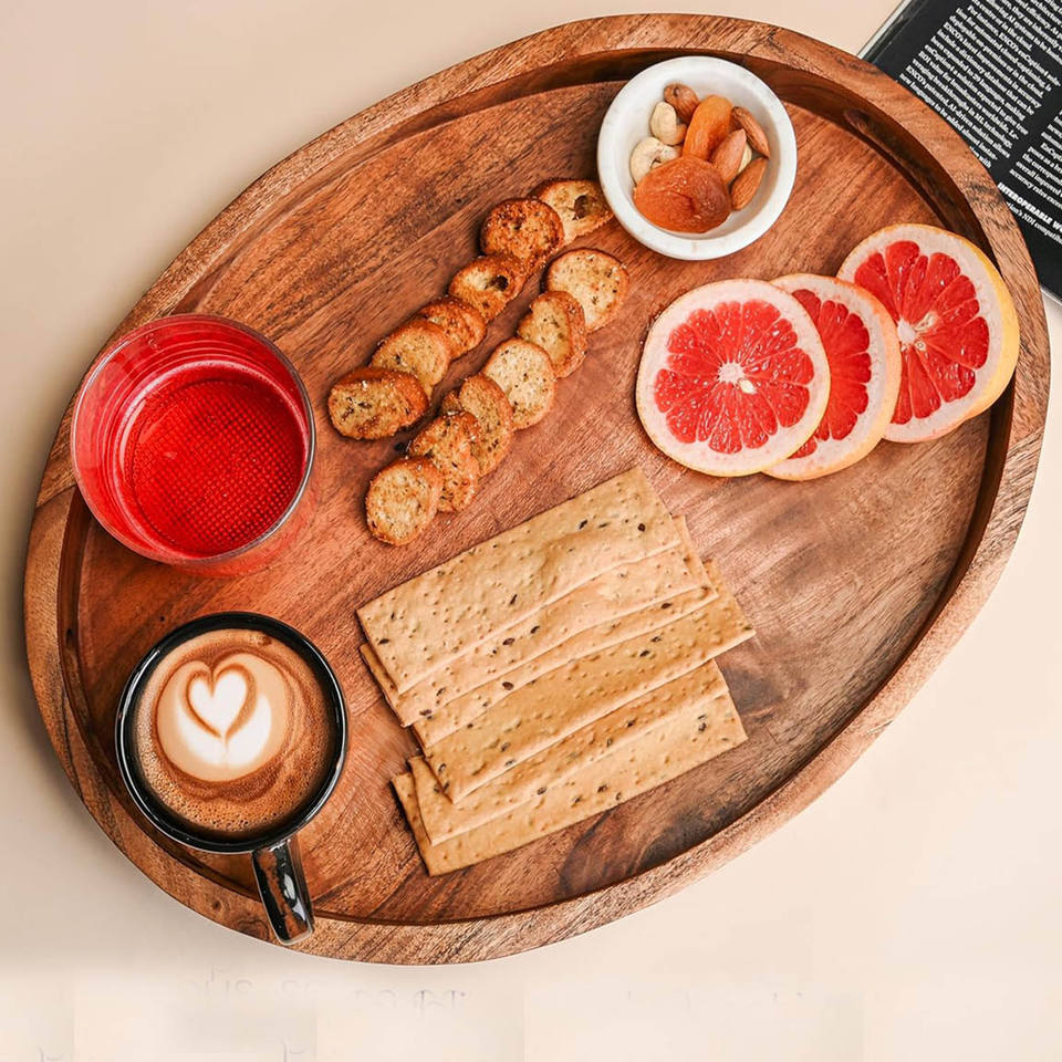 Product Name:Acacia Wood Oval Serving Tray with Cutout Handles