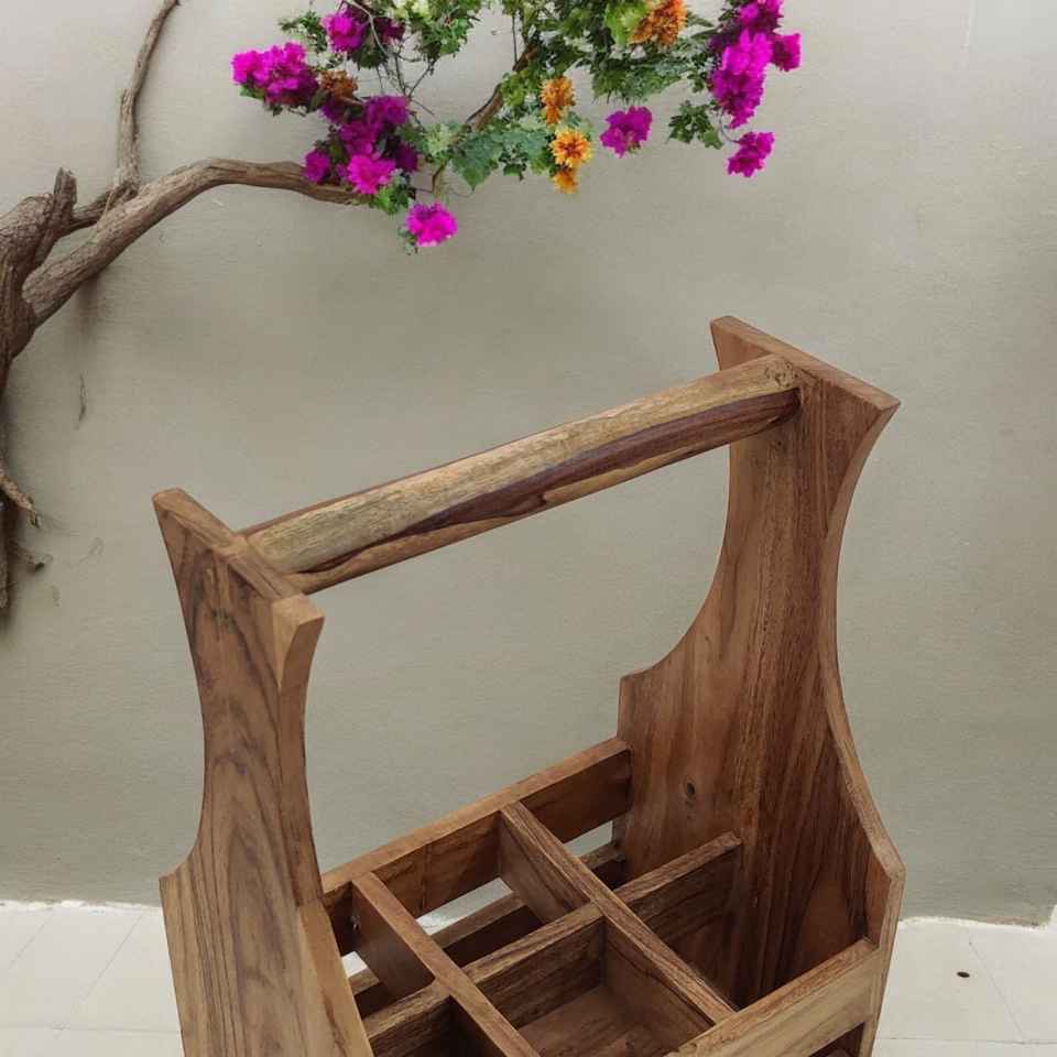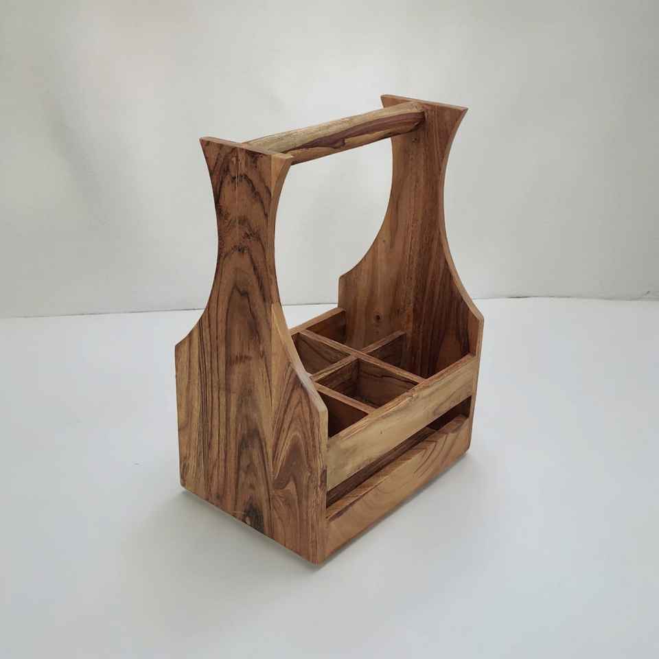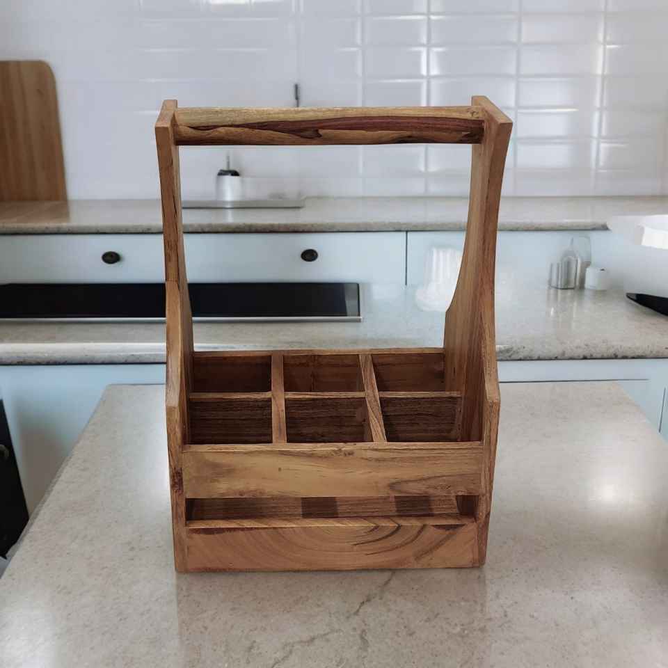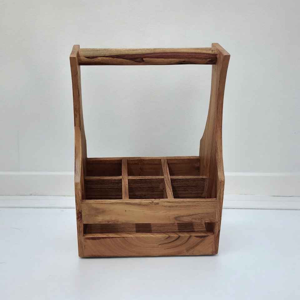 Handcrafted Acacia Wood Spice Rack Caddy Natural Oil Finish Standing Type Storage for Spices Beer Soda Bottles Home Use