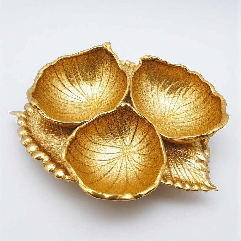 Handcrafted Aluminium and Glass Luxury Dry Fruit Server with Three Linked Round Bowls in Gold Finish Designed Decorative Dining