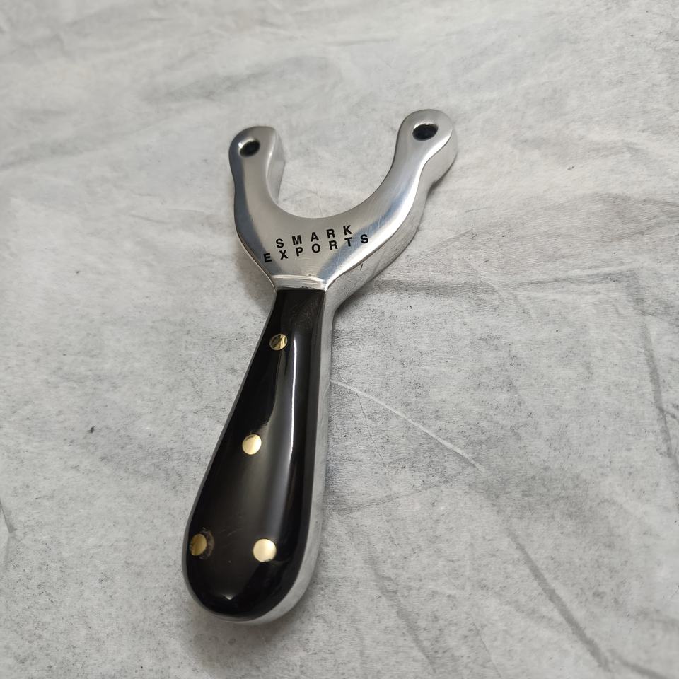 Handcrafted Aluminium Slingshot with Buffalo Horn Handle Premium Quality Hunting Catapult Strong and Durable Outdoor Slingshot