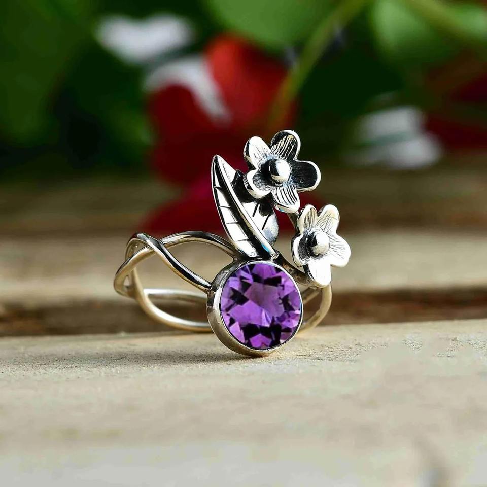 Handcrafted Amethyst Ring Unique Statement Jewellery for Nature Lovers and February Birthstone Gifts Available for Sale