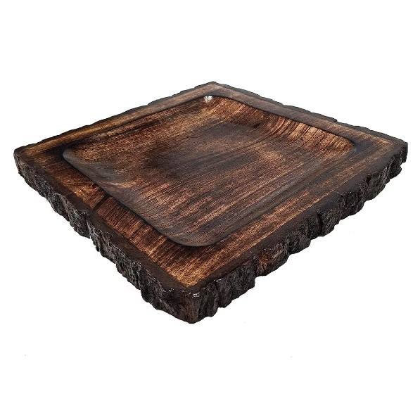 Handcrafted Eco-Friendly Non-Toxic Dishwasher Safe Wooden Serving Platter Set Tree Bark Home Kitchen Use Food Safe Tableware Lid