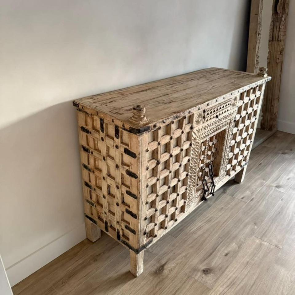 Handcrafted Antique Teak Wood Bar Counter Vintage Carved Solid Top Console Rustic Home Furniture Entryway Reception Front Desk