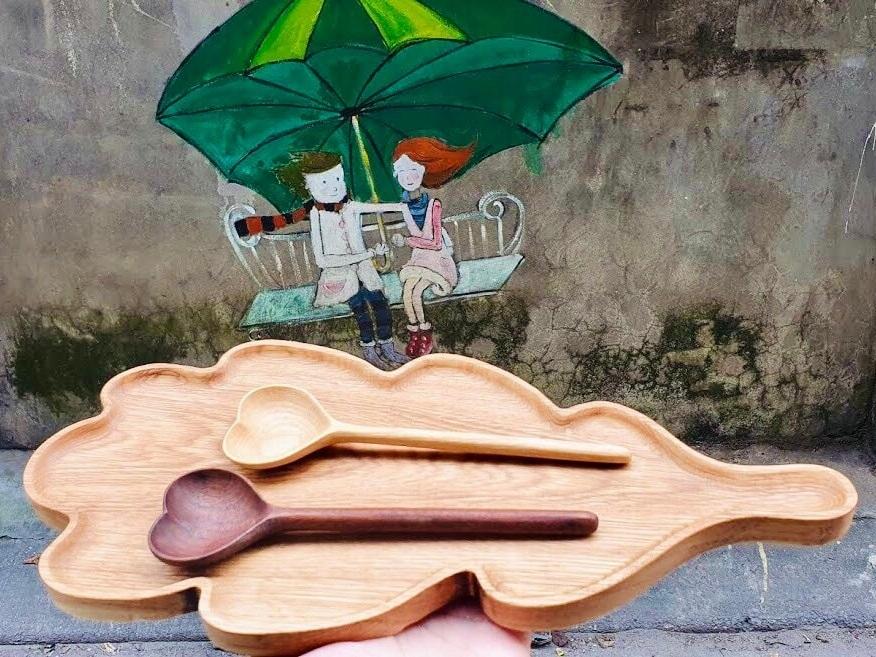 Handcrafted Ash Wood Leaf Shaped Portable Storage Tray Modern Luxury Kitchen Serving Dishwasher Safe Tableware Food Beverage