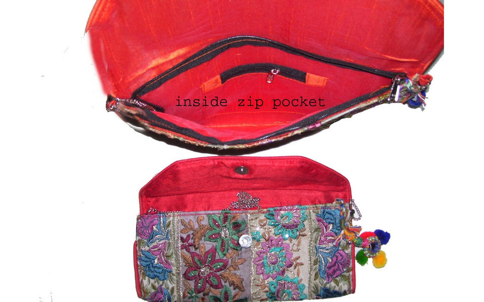 Handcrafted Banjara Ethnic Large Capacity Clutch Bag Cotton Material Traditional Embroidery Zipper Closure Bohemian Festivals