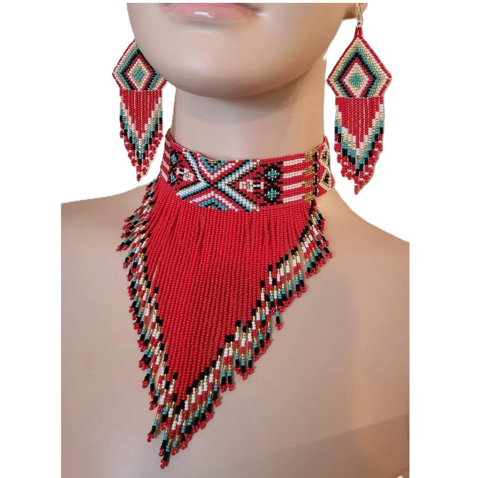 Handcrafted Beaded Choker Necklace with Vibrant Seed Beads Tribal Style Seed Beads Choker Necklace with Ethnic Look