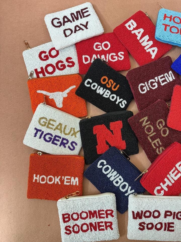 Handcrafted Beaded Coin Purse Beautiful Pink with Sunset Design Zippered Change Wallet For Women