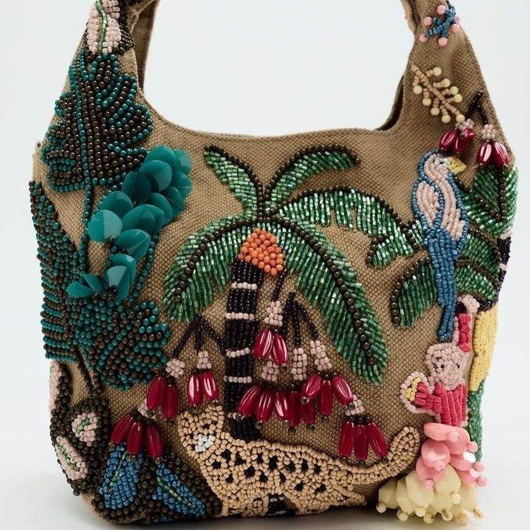 Handcrafted Beaded Coin Purse Tropical Pattern Design Women Fashion Small Pouch Wallet Statement Carry Accessory