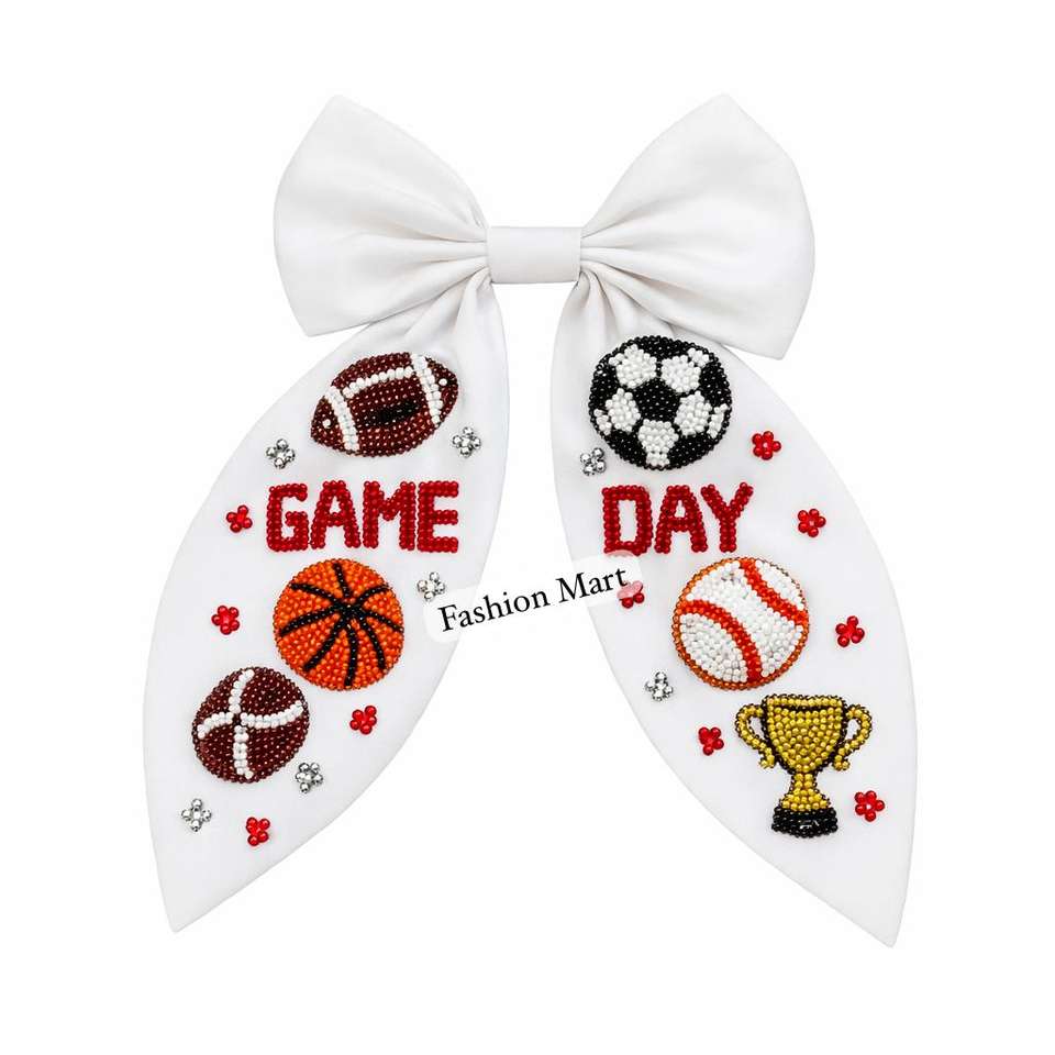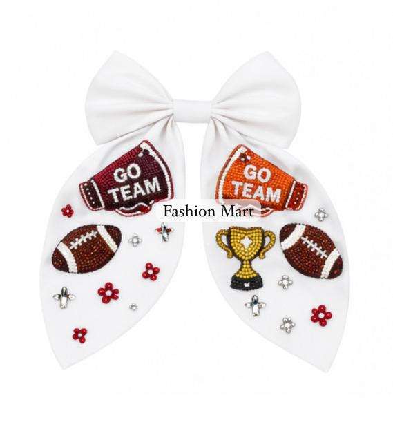 Handcrafted Beaded Gameday Bow Football Soccer Basketball Cheer Hair Accessory