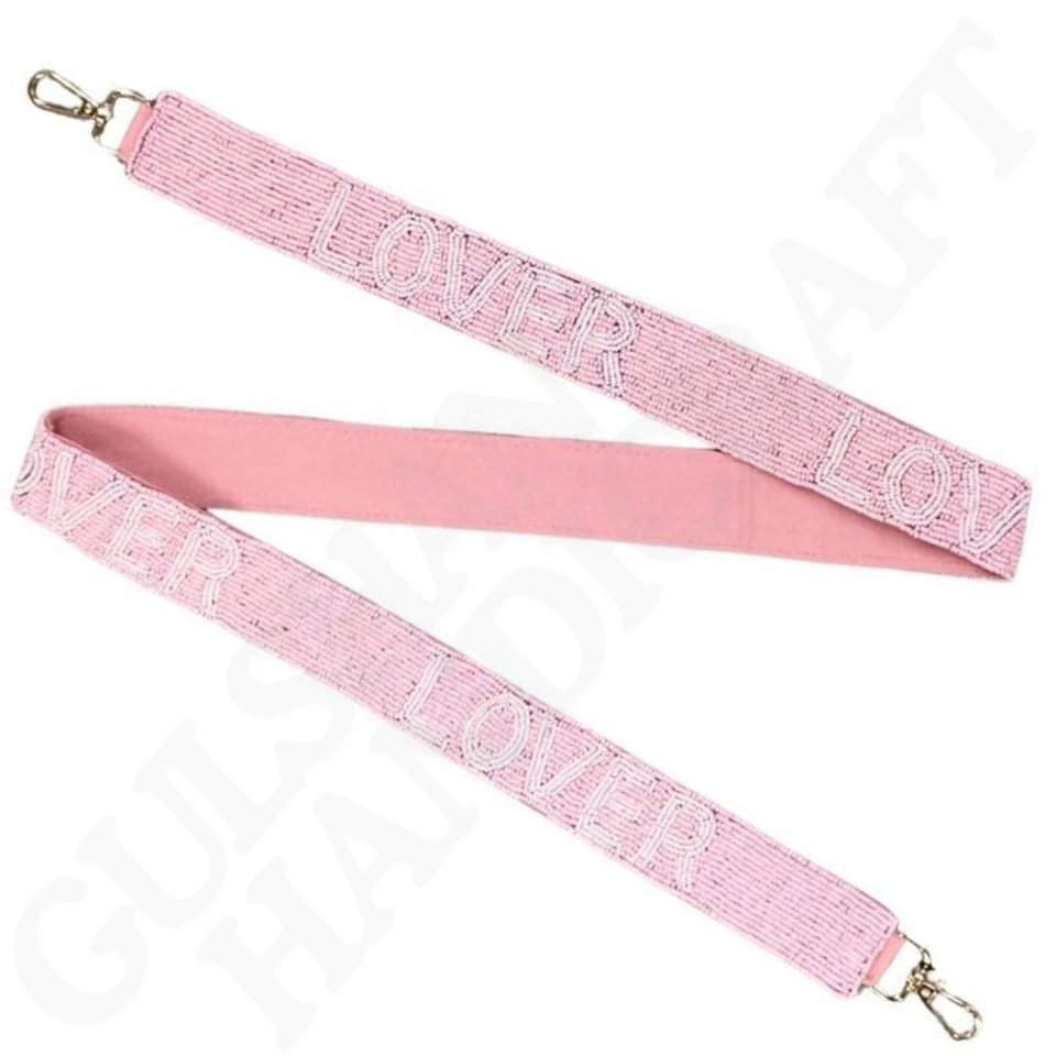 Handcrafted Stylish Beaded Lover Purse Strap Durable Cotton Fabric Custom Lettering Everyday Use Embroidery Crafts Needlework