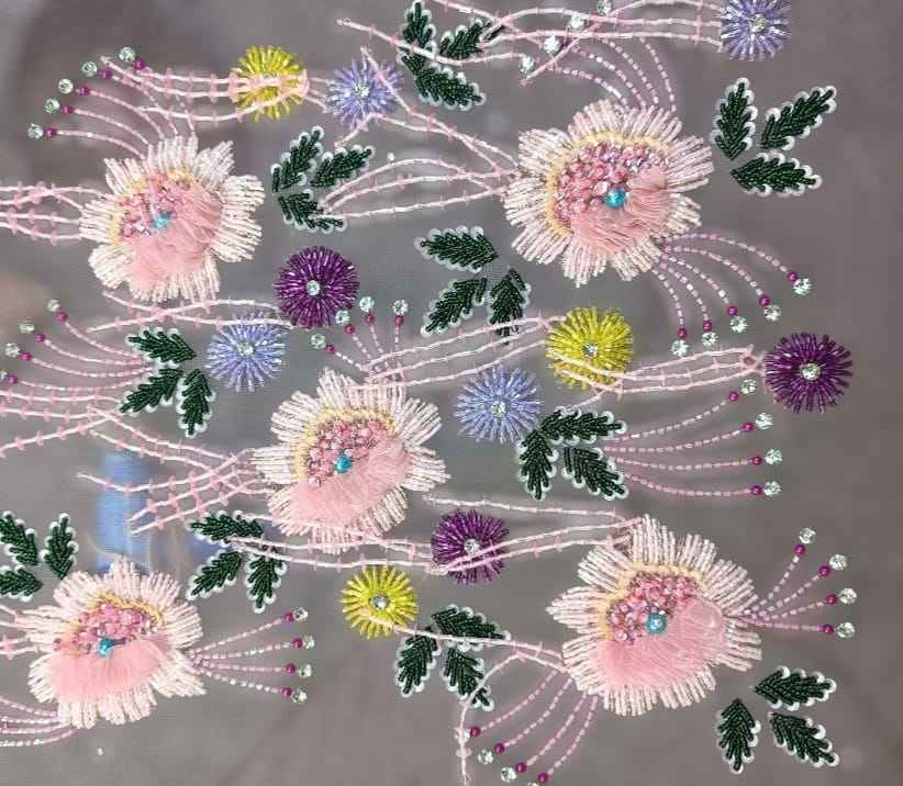 Handcrafted Beaded Lace Fabric With Artistic Detailing Ideal For Lehenga Designing For Bridal Wear For Events
