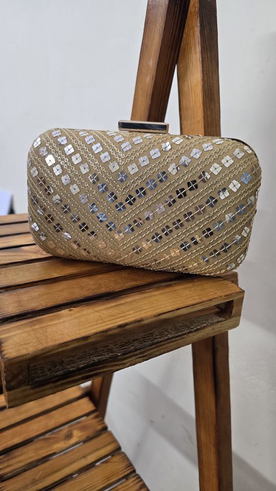 Beautiful Handcrafted Women's Silk Lining Clutch Box Purse Sequined Ethnic Style Wedding Bridal Casual Handbags for Girls