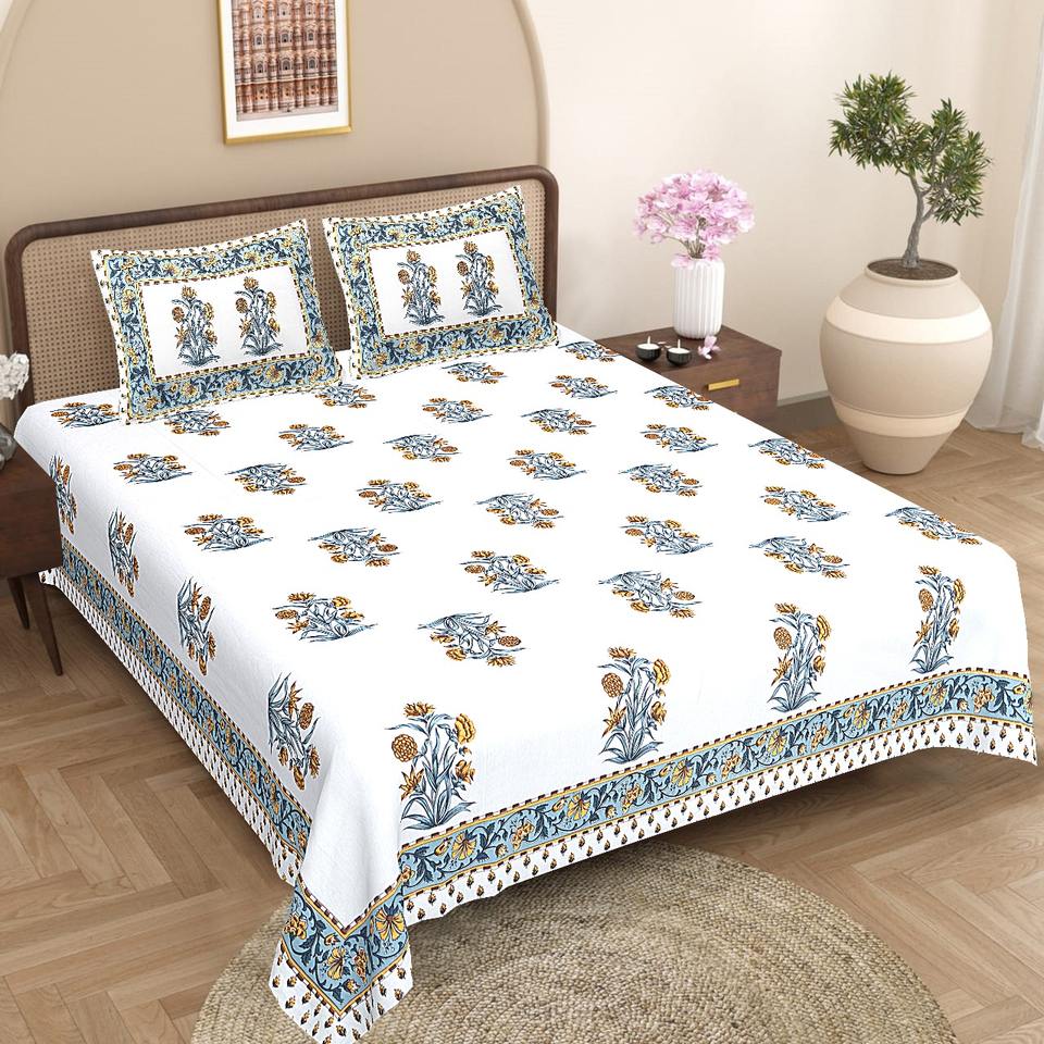 Handcrafted Bedding Set Cotton Bedsheet and Pillow Cover Set Border Design Trending Indian Design Hand Block Printed Bed Sheets
