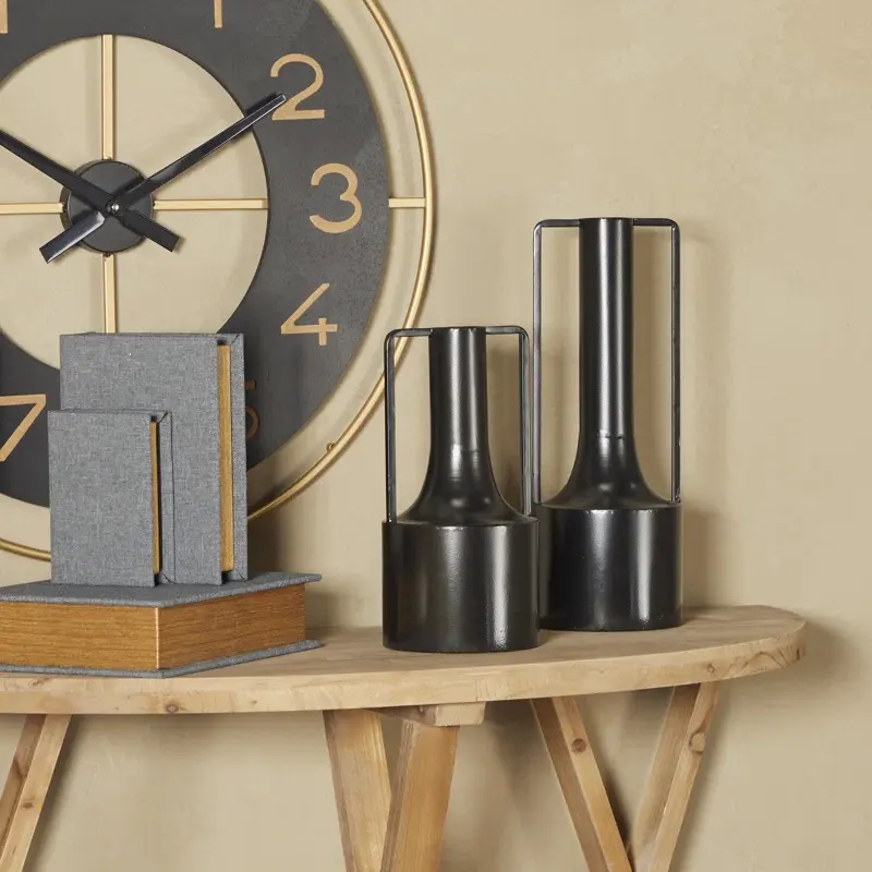 Handcrafted Black Iron Coastal Tabletop Flower Vase with Handle Unique Design for Congratuations Living Room Bedroom Decor