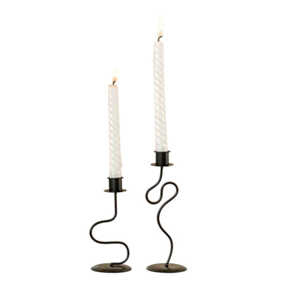 Handcrafted Black Iron Wavy Candle Holder Modern Minimalist Squiggle Candlestick Stand Unique Metal Home Decor Table Candlestick