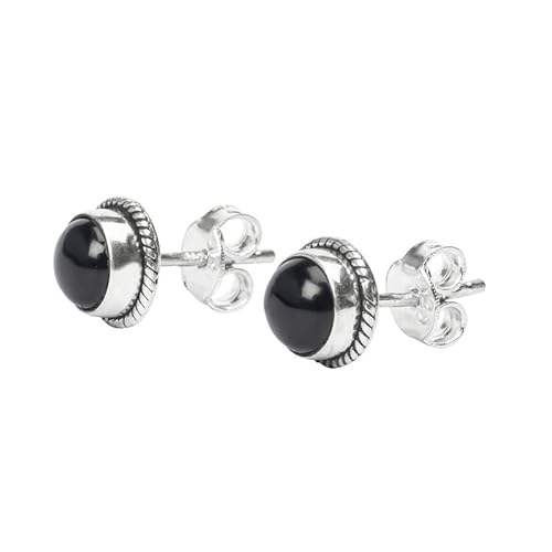 Everyday Elegance Classic Gemstone Jewelry Handcrafted Sterling Silver Rope Edge Stud Earrings Black Onyx Bezel Setting Gift