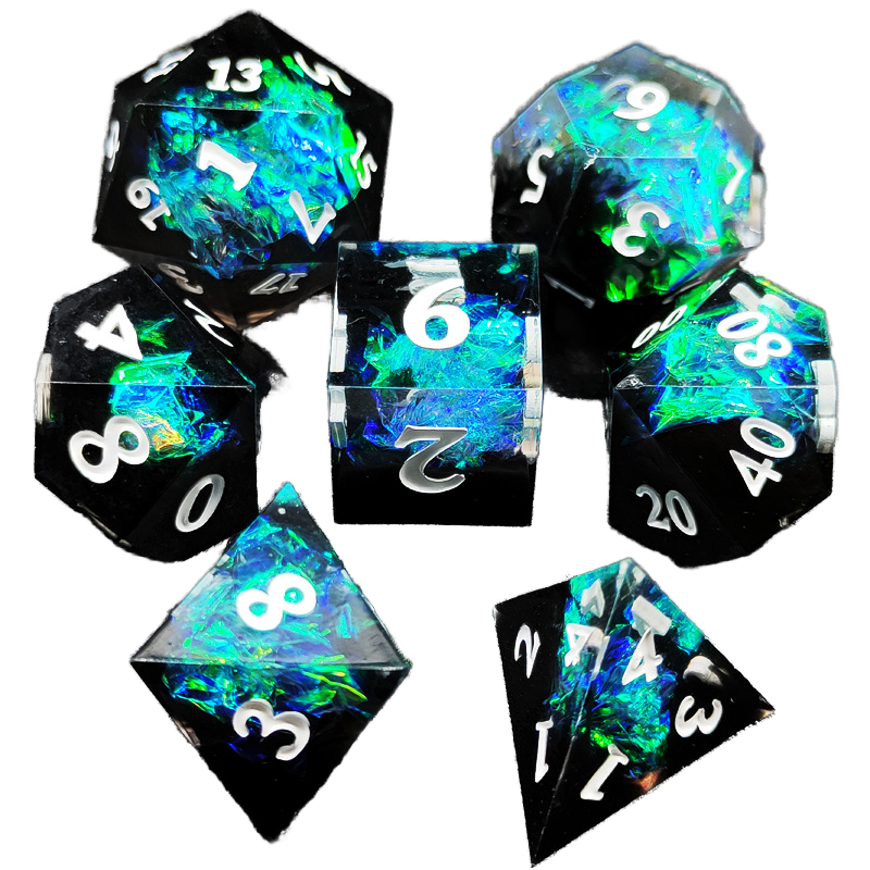 Handcrafted Blue Fish-Shaped Dragon-Shaped Resin Dice Liquid Core Polyhedral Sharp-Edged Compatible with D&D Role-Playing Games