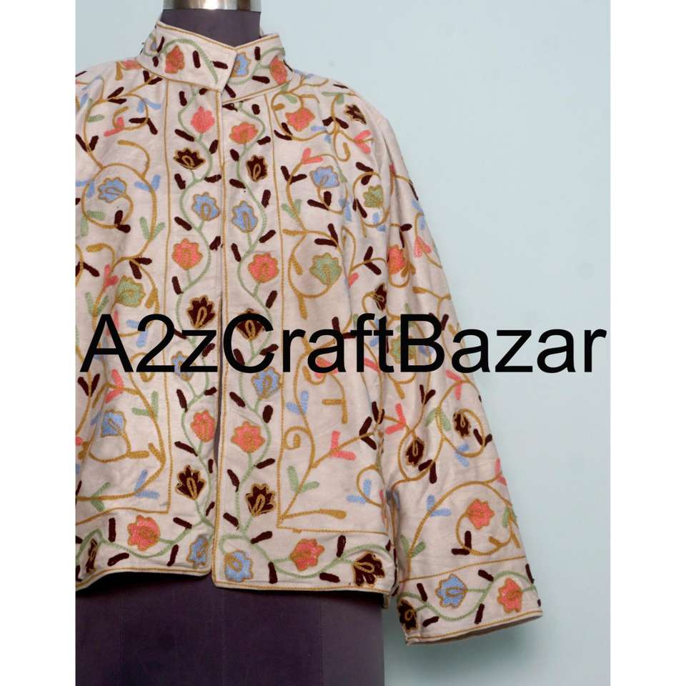 Handcrafted Boho Chic Velvet Jacket 100% Cotton Knitted Fabric Embroidered Floral Pattern Eco-Friendly Breathable Quick Summer