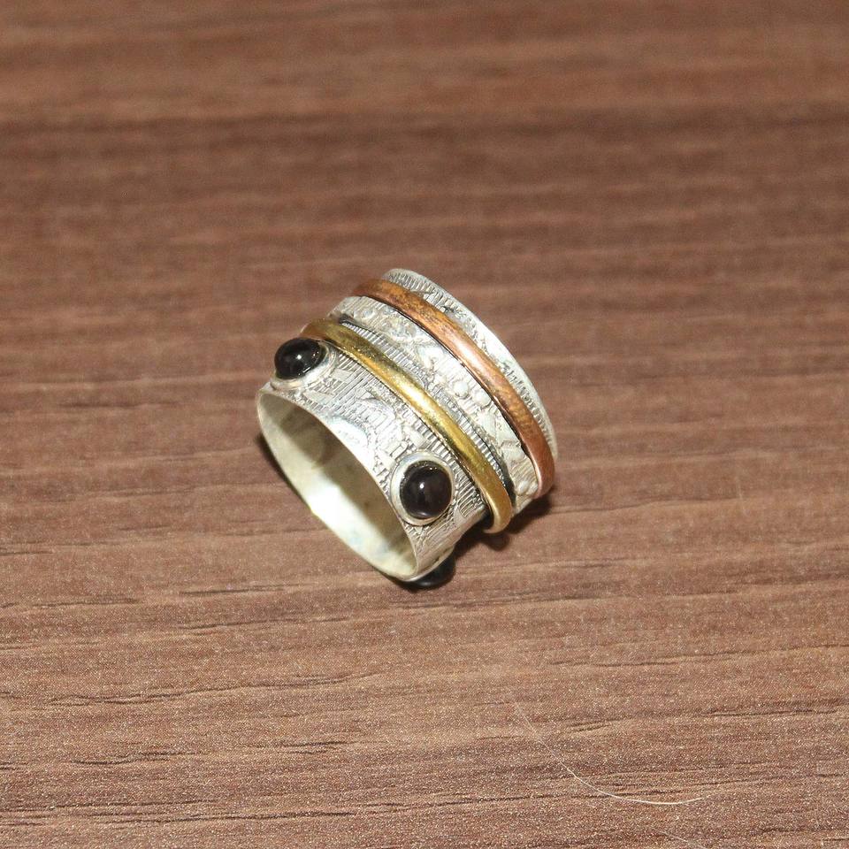 Handcrafted Boho Hammered Sterling Silver Thumb Simple Wedding Band Ring