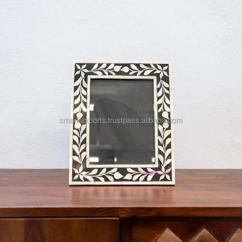 Handcrafted Mother Pearl Lightweight Modern Photo Frame Stylish Black White Decorative Holder for Tabletop Display Gifting Home