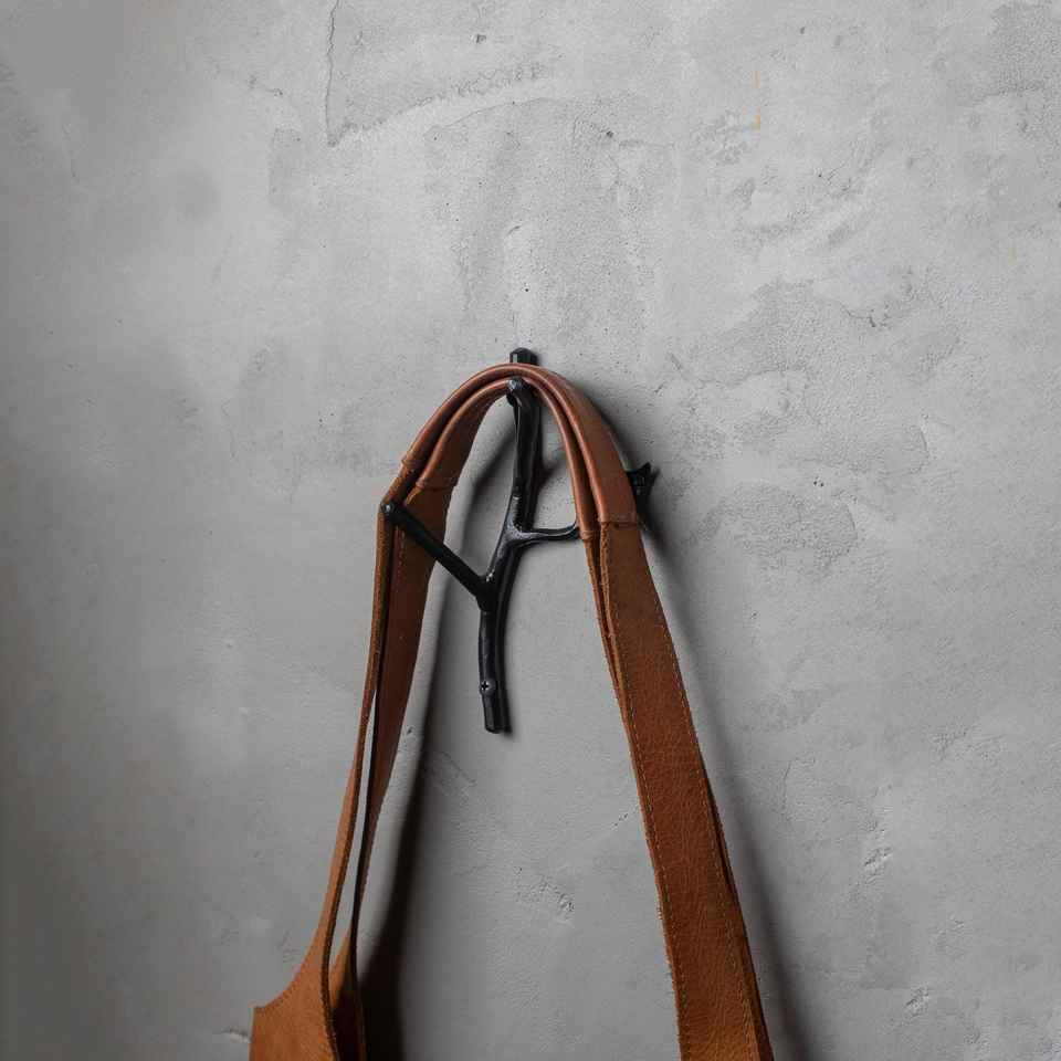 Handcrafted Branch Style Iron Wall Hook With Leaf Accent Decorative Metal Hanging Organizer For Coats Bags Hats Keys Towels