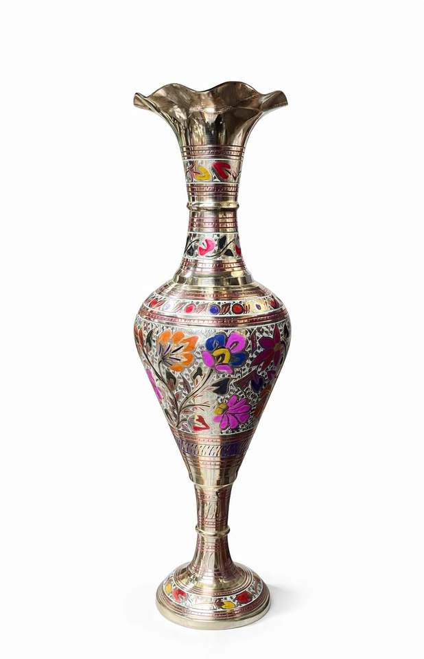 Handcrafted Brass Flower Vase Modern Meenakari Engraved Metal Floor Vase Home Office Decor Tall Polished Finish Decorative Vase