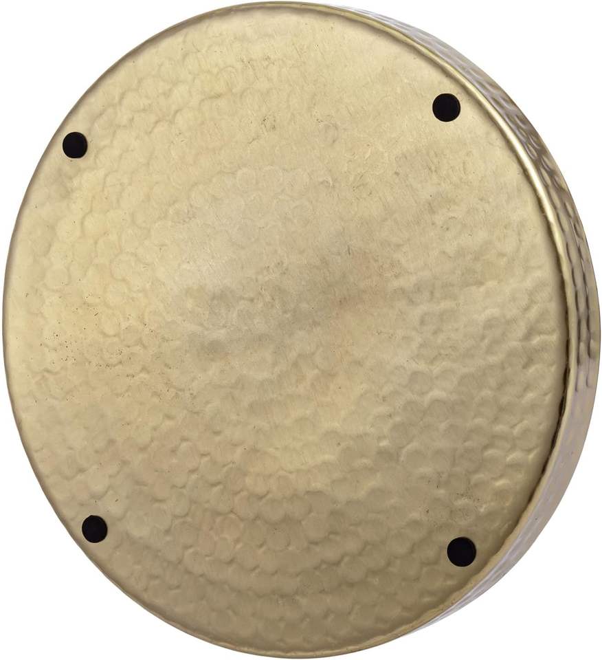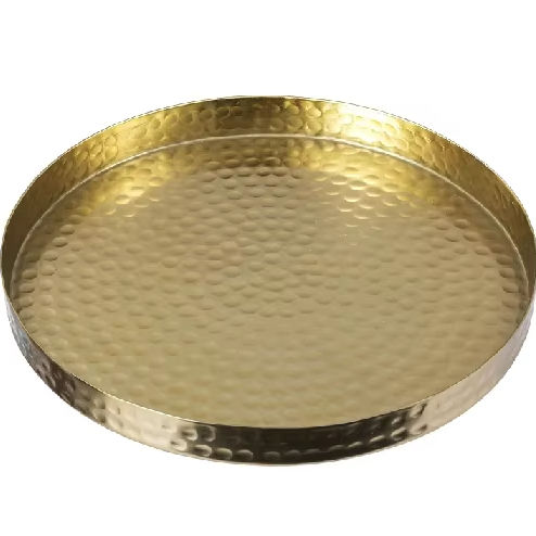 Handcrafted Brass Tone Metal Display Tray Hammered Design Steel Serving Platter for Kitchen Tabletop Decorative Centerpiece for