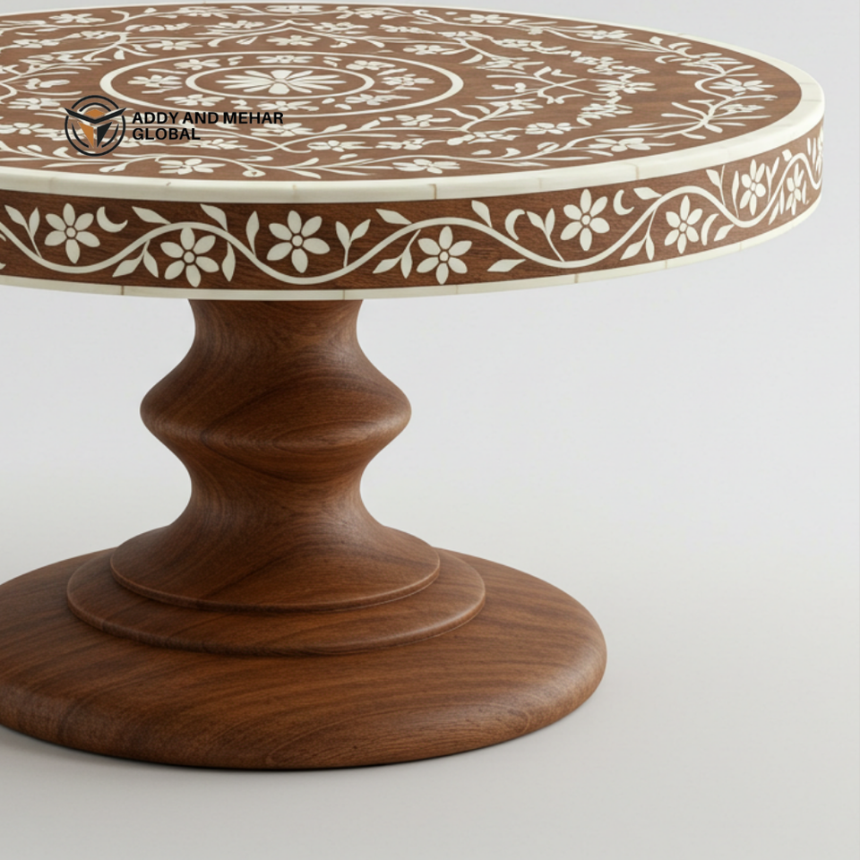 Handcrafted Brown Bone Inlay Wooden Cake Stand for Birthday/Anniversary Elegant Floral Pedestal for Desserts & Decor