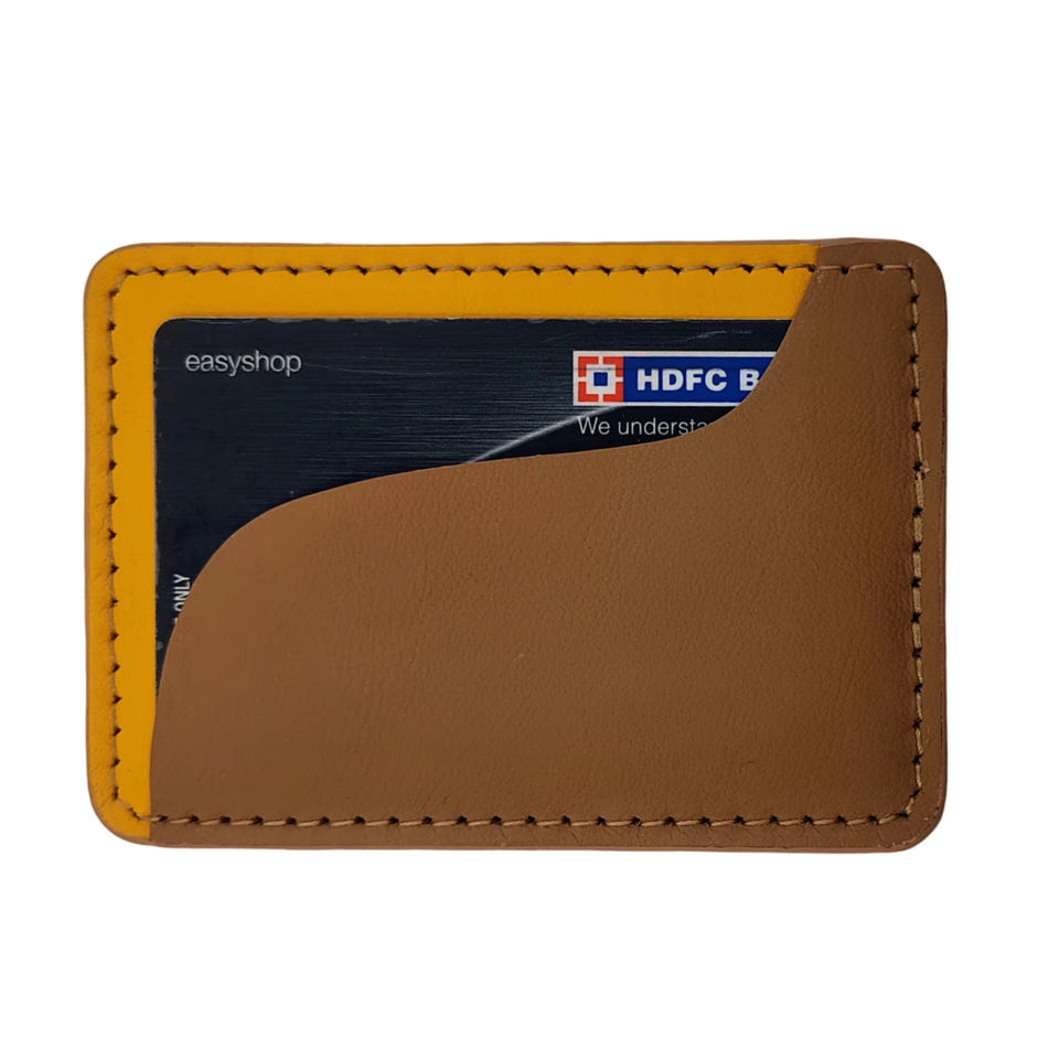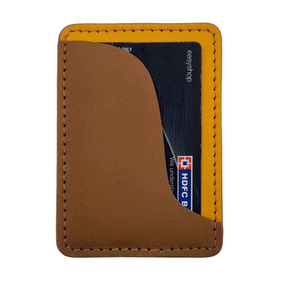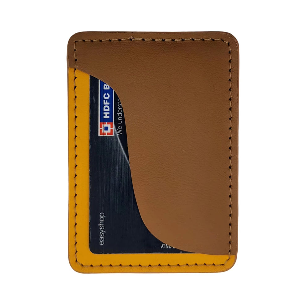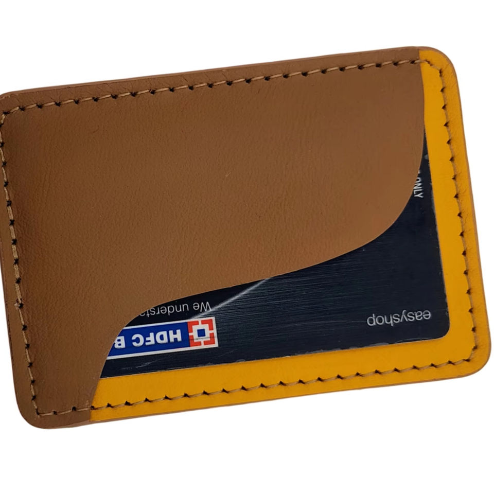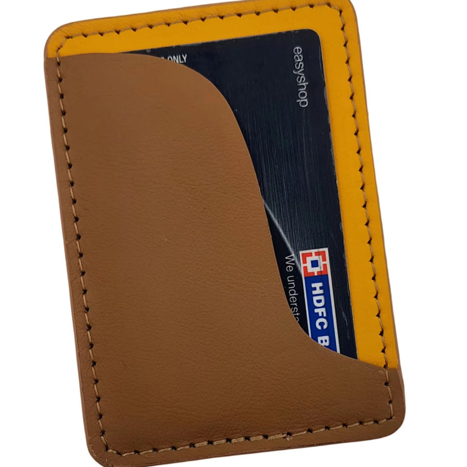Handcrafted Brown & Yellow Leather Card Case Stylish & Durable Slim Wallet Genuine Credit Card Holder with RFID Protection