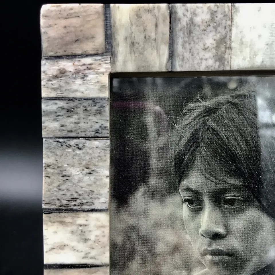 Handcrafted Camel Bone Inlay Wood Photo Frame Dark White for Home Wall Decoration at Lowest Price by Mehak Impex
