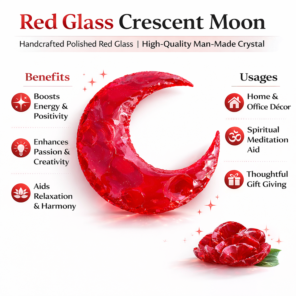 Handcrafted Carved Red Glass Crescent Moon Crystal Decorative Piece 3.5-4 Inches for Home Decor Meditation Altar Display