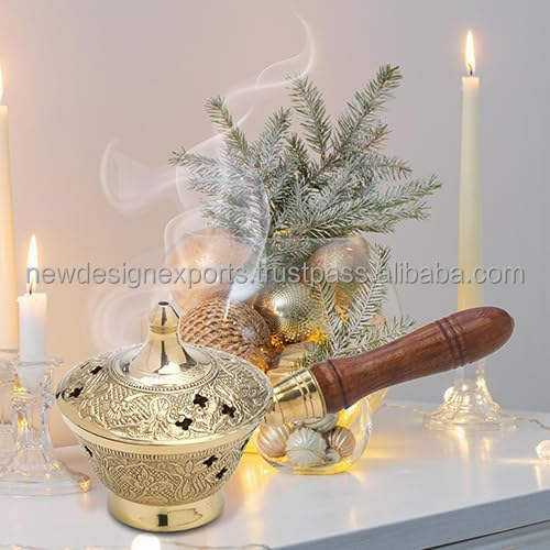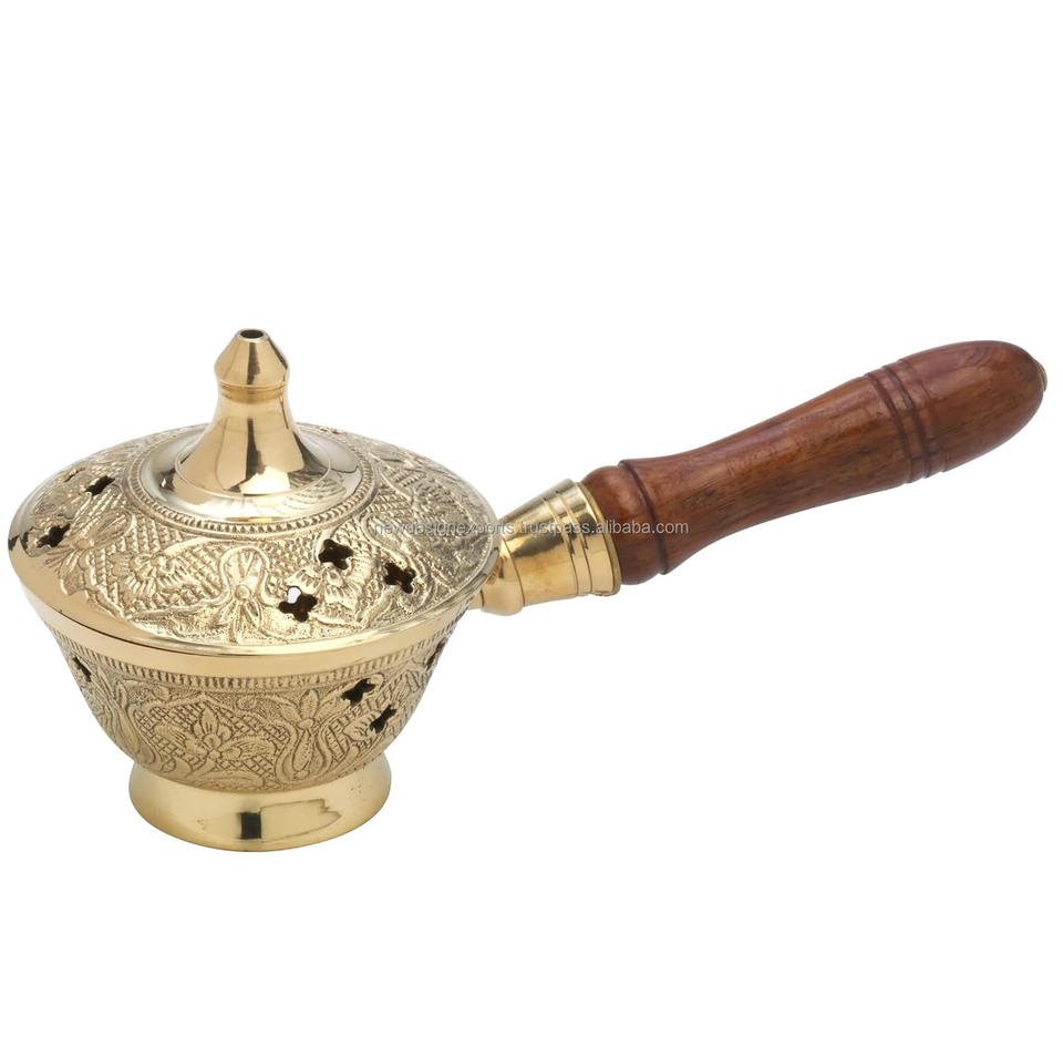 Handcrafted Charcoal Incense Burner for Resin and Frankincense Premium Indian Censer with Wooden Handle