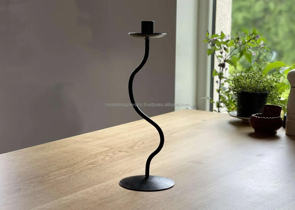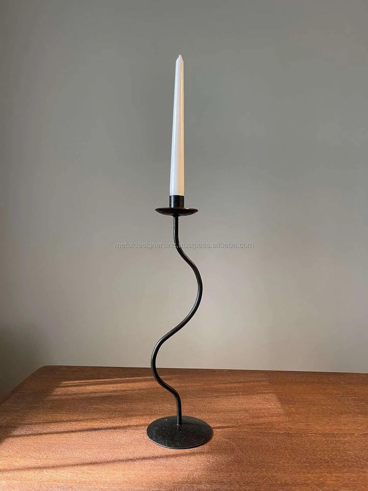 Handcrafted Christmas Candle Holder Iron Forged Standing Type in Golden-Black Blacksmith Made Metal Candlestick