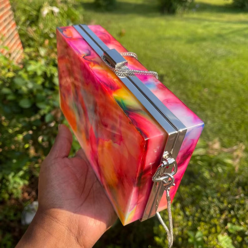 Handcrafted Classic Resin Clutch Stylish Vintage Lady Handbag for Her Unique Customized Fashion Gift for Valentine's Day