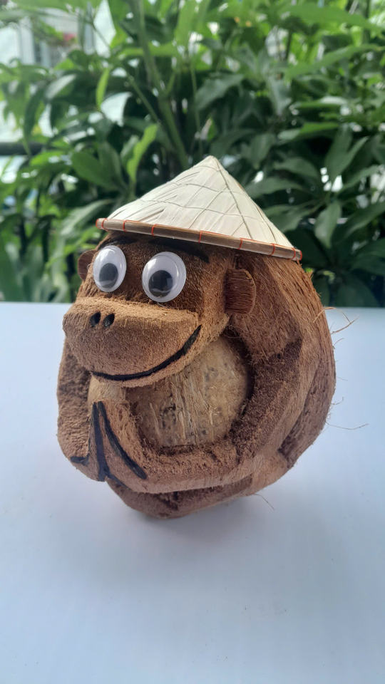 Handcrafted Coconut Monkey Decor - Unique Coconut Monkey Coco Shell Sculptures, Premium Coconut Animal Art from Vietnam Artisans